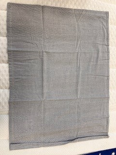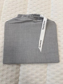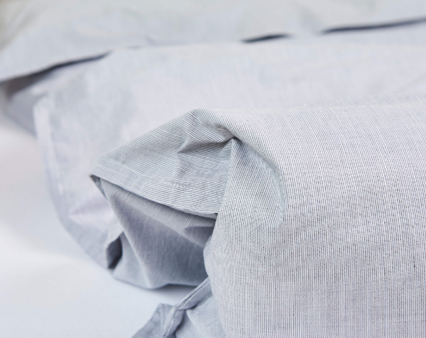 Nyholm ist eine weitere Innovation von Journey Living: Der Stoff ist eine Mischung aus Bio-Baumwolle und Tencel im Mélange Look, garngefärbt und fein gestreift in grau-weiss.