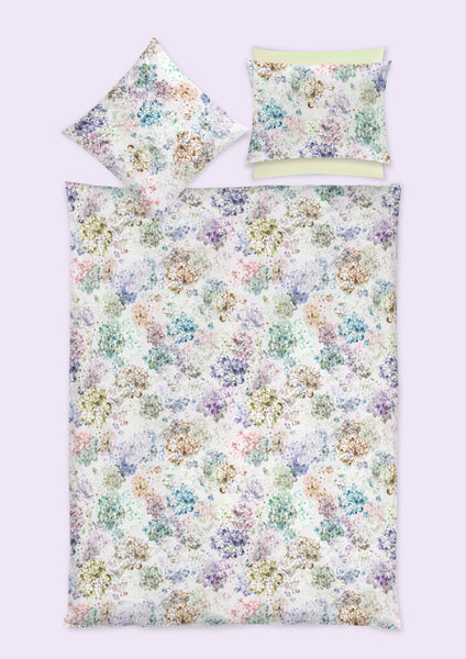 Die Hortensie ist keine klassische Blume, sondern ein blühender Strauch mit grossen Blüten. Beliebt in historischen Parkanlagen und romantischen Cottage-Gärten, bringt sie Farbe in schattige Nischen. Auf weichem, bügelarmem Jersey entfalten die fein abgestimmten Blüten in Grün-, Blau-, Rot- und warmen Gelbtönen ihre natürliche Eleganz. Das Druckdesign ARABELLA fängt diesen Reichtum ein und passt perfekt zu hellen Interieurs, Holztönen und Naturmaterialien.