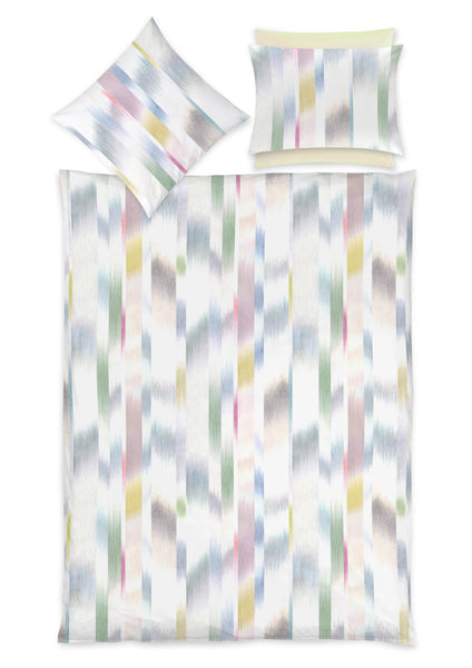 Die Christian Fischbacher Bettwäsche Motion aus feinstem Satin verleiht ihrem Schlafzimmer ein ebenso verschwommenes, Aquarelles Ambiente.